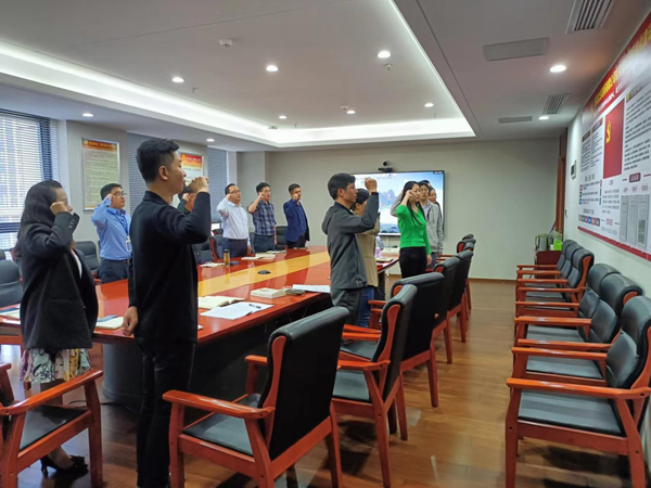 宣誓儀式上,全體黨員、入黨積極分子起立,奏唱國際歌。支部書記對新加入黨組織的預備黨員表示歡迎,祝賀黨組織充實了新鮮血液。面對鮮紅的黨旗,黨員同志們一起高舉右手,再次莊嚴宣誓。“我志愿加入中國共產(chǎn)黨……隨時準備為黨和人民犧牲一切,永不叛黨。”鏗鏘有力的誓詞,強烈震撼著在場的每一位黨員,一字一句,神圣而豪邁,體現(xiàn)了黨員同志們對中國共產(chǎn)黨的無限忠誠和為共產(chǎn)主義奮斗終身的決心。