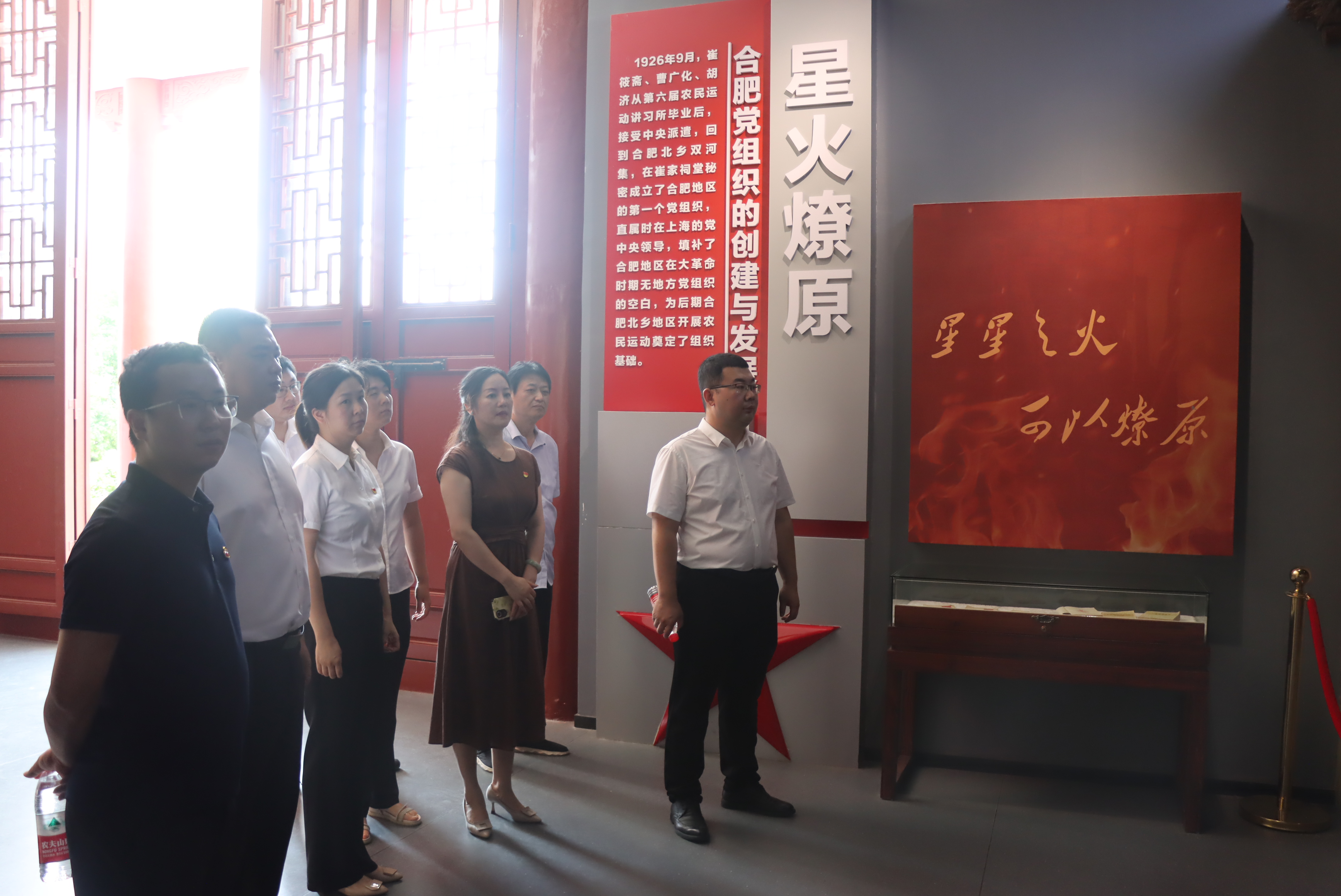 中共合肥北鄉(xiāng)支部紀(jì)念館是合肥市愛(ài)國(guó)主義教育基地、黨史教育基地、黨風(fēng)廉政建設(shè)教育基地,同時(shí)也是為紀(jì)念合肥地區(qū)第一個(gè)中國(guó)共產(chǎn)黨組織(中共合肥北鄉(xiāng)支部)而建。大家跟著講解員認(rèn)真了解了中共合肥北鄉(xiāng)支部創(chuàng)建歷史背景與開(kāi)展革命光輝歷程,走進(jìn)崔筱齋紀(jì)念館,大家在簡(jiǎn)樸莊重的展廳里認(rèn)真了解了崔筱齋烈士的生平履歷、革命歷程。展廳里珍貴的文物實(shí)物、翔實(shí)的檔案資料,吸引大家駐足良久并詳細(xì)詢(xún)問(wèn)有關(guān)情況,深入了解了合肥北鄉(xiāng)黨支部艱苦卓絕的奮斗史和光輝歷程。懷著無(wú)比崇敬的心情,黨員們面向黨旗重溫入黨誓詞。