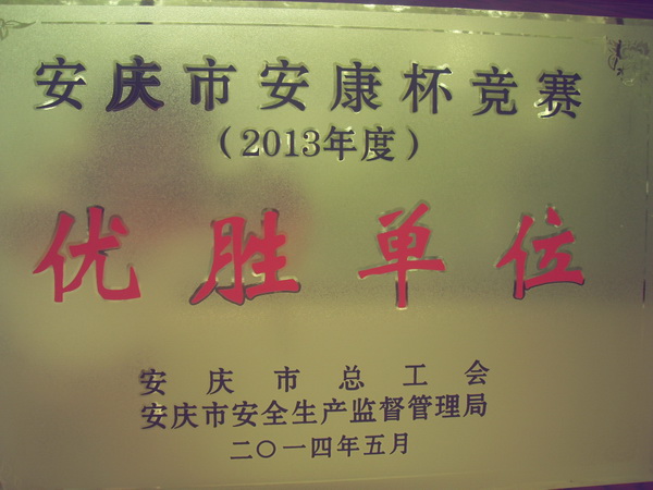 7月8日,樅陽縣公司被安慶市總工會、安慶市安全監督管理局授予“安慶市2013年度安康杯競賽優勝單位”。