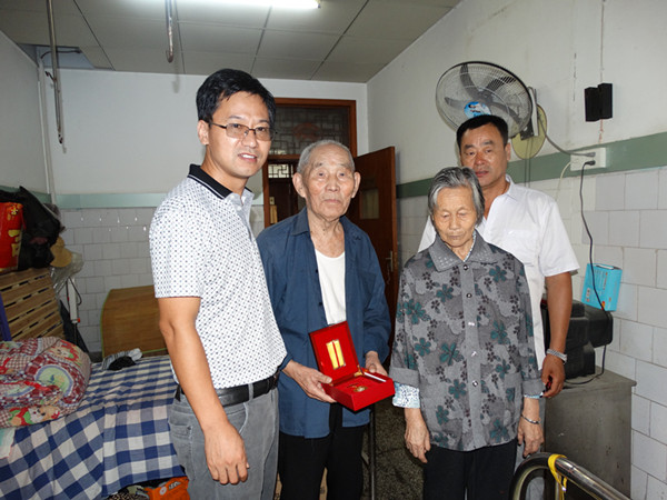 8月31日上午,蒙城公司領(lǐng)導(dǎo)班子成員看望慰問了公司離休老干部、抗戰(zhàn)老兵李永太同志,并代表省公司向李永太頒發(fā)了中共中央、國務(wù)院、中央軍委向抗戰(zhàn)老兵頒發(fā)的“紀(jì)念中國人民抗日戰(zhàn)爭暨世界反法西斯戰(zhàn)爭勝利70周年紀(jì)念章。