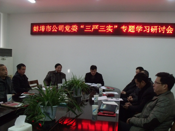 11月27日,蚌埠市公司黨委召開中心組學(xué)習(xí)(擴(kuò)大)會議,學(xué)習(xí)貫徹新修訂的《中國共產(chǎn)黨廉潔自律準(zhǔn)則》和《中國共產(chǎn)黨紀(jì)律處分條例》,開展“三嚴(yán)三實(shí)”專題研討,會議由市公司黨委書記、經(jīng)理邱軍主持,蚌埠市、縣公司領(lǐng)導(dǎo)班子全體成員參加了學(xué)習(xí)研討會。