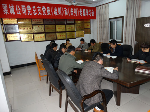 4月5日,蒙城公司黨總支召開《準則》和《條例》專題學習會,全體黨員領導干部參加會議。