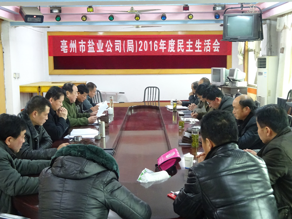 根據(jù)省公司黨委統(tǒng)一部署,1月18日亳州市公司黨委召開2016年度民主生活會(huì),市公司黨委書記李文俊主持會(huì)議并講話,市公司董事長、經(jīng)理、局長榮立華出席會(huì)議,三縣公司黨政主要負(fù)責(zé)同志參加民主生活會(huì)。