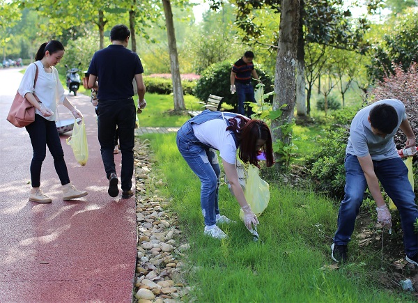 芳草萋萋,河水潺潺,活動日當天,全體參與人員佩戴黨徽,手持垃圾袋,頂著初秋的嚴嚴烈日,開始細心清除道路、草叢、林間、水邊的白色垃圾。大家爭先恐后,充分發揚不怕苦、不怕臟、不怕累的作風,展開地毯式搜索,紛紛將撿到的白色垃圾裝進袋子里。