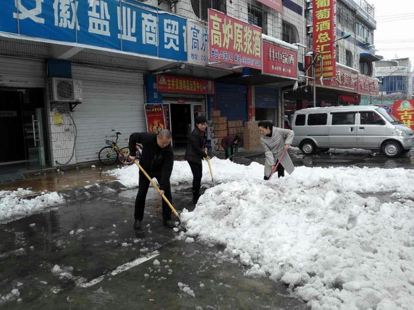 下午黨支部組織黨員干部及職工進(jìn)行義務(wù)除雪勞動(dòng)。不但鏟除公司門前的積雪,還進(jìn)行漕沖糖酒城市場(chǎng)路面積雪清除,以培養(yǎng)黨員的宗旨意識(shí)和奉獻(xiàn)精神。