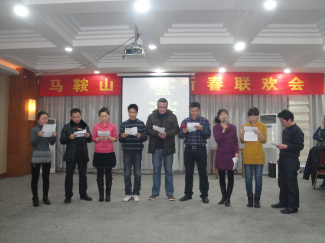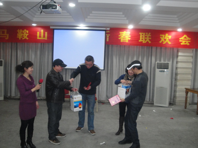 聯(lián)歡會(huì)在歡快的春節(jié)序曲中開(kāi)始,首先是公司經(jīng)理孫家倫發(fā)表了熱情洋溢的講話,感謝所有員工在過(guò)去的一年里所付出努力,表示了對(duì)職工家屬的熱烈歡迎,同時(shí)號(hào)召大家在新的一年里要繼續(xù)給力,爭(zhēng)取實(shí)現(xiàn)公司的全面工作再上一個(gè)新臺(tái)階,公司工會(huì)主席王本琴帶領(lǐng)四位工會(huì)委員集體給大家拜年。此次聯(lián)歡會(huì)不僅有二重唱、舞蹈、朗頌等文藝表演,還有公司員工被分成兩隊(duì)的猜成語(yǔ)、夾汽球跑、扔羽毛球等競(jìng)技比賽項(xiàng)目,另外穿插參與游戲、摸獎(jiǎng)等環(huán)節(jié),整場(chǎng)聯(lián)歡會(huì)暖意融融,高潮迭起。由員工及家屬表演的詼諧舞蹈《玫瑰》將氣氛推向高潮,歌聲、笑聲、歡呼聲在這里聚集,友情、感情、豪情在這一刻升華。