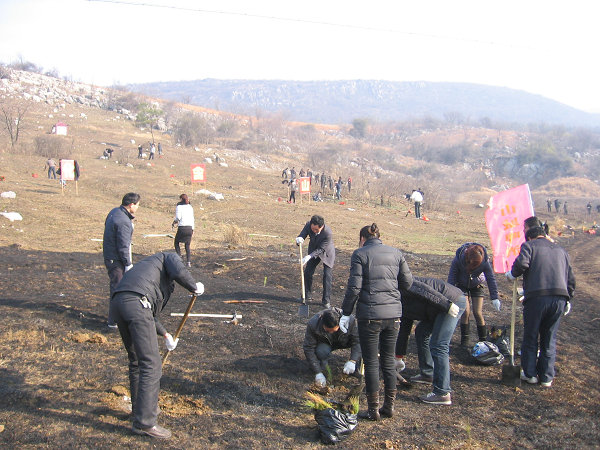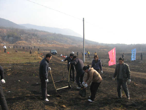 3月12日八時許,大家帶著植樹工具到達指定的植樹現場,活動中同志們密切分工、團結協作,有的挖坑,有的種樹,有的擺放樹苗……,大家發揚不怕苦、不怕累的工作作風,興致高昂,揮鎬挖土,揮汗如雨,干的熱火朝天,好一派繁忙的景象。在一個多小時的時間里共栽下了200余棵象征希望、和諧的樹苗,全部按照要求排列整齊,深淺適中,圓滿完成了此次植樹任務,得到了林場技術人員和有關領導的高度贊揚,縣電視臺對我司的植樹活動進行了現場采訪報道。