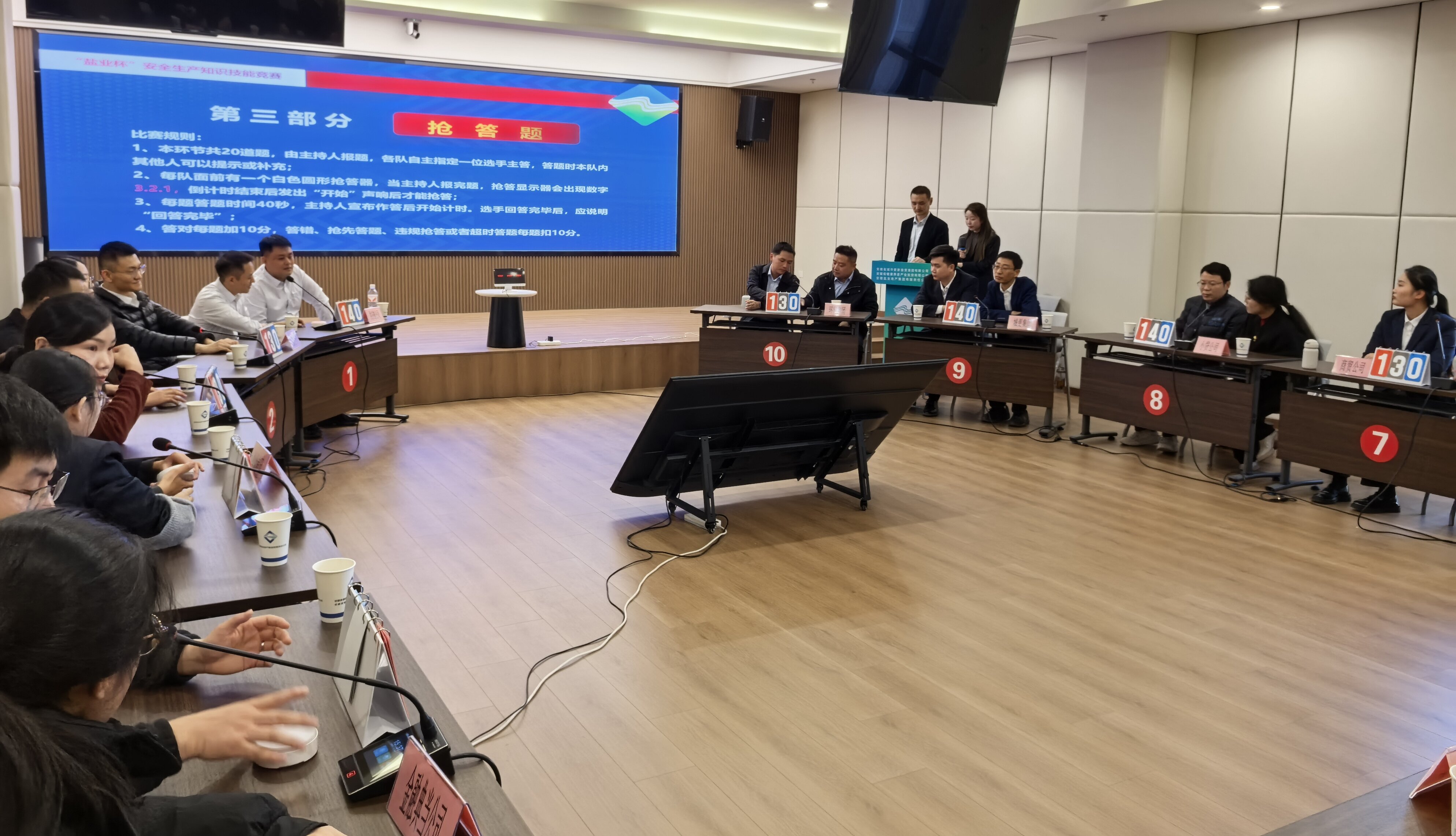 本次競(jìng)賽以“人人講安全,個(gè)個(gè)會(huì)應(yīng)急——查找身邊安全隱患”為主題,聚焦政策法規(guī)和實(shí)踐操作,旨在全面提升干部職工對(duì)危險(xiǎn)、有害因素的辨識(shí)能力與應(yīng)急處置技能,堅(jiān)決防范生產(chǎn)安全事故發(fā)生。經(jīng)過(guò)前期籌備,來(lái)自集團(tuán)所屬企業(yè)的10支代表隊(duì)同臺(tái)競(jìng)技,各代表隊(duì)冷靜答題、奮勇?tīng)?zhēng)先。“各顯身手”個(gè)人必答和“齊心協(xié)力”團(tuán)隊(duì)必答環(huán)節(jié)穩(wěn)扎穩(wěn)打,展現(xiàn)扎實(shí)知識(shí)儲(chǔ)備;“爭(zhēng)分奪秒”搶答環(huán)節(jié)分秒必爭(zhēng),考驗(yàn)快速反應(yīng)能力;“勇攀高峰”風(fēng)險(xiǎn)環(huán)節(jié)深入分析,實(shí)現(xiàn)理論實(shí)踐深度融合。尤其在風(fēng)險(xiǎn)題環(huán)節(jié),選手們根據(jù)實(shí)際案例查風(fēng)險(xiǎn)、找隱患,展現(xiàn)了對(duì)政策法規(guī)知識(shí)的準(zhǔn)確理解和解決實(shí)際問(wèn)題的良好能力。