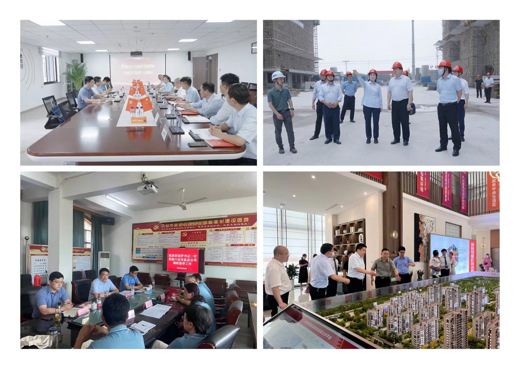 在霍邱項目公司,羅太忠實地查看了項目二期建設、產品樣板以及安全生產等情況;在六安市鹽業公司,羅太忠查看了鹽品倉庫,了解食鹽儲備任務落實情況;隨后在兩地分別召開座談會,聽取黨建和生產經營工作匯報。與領導班子、部門負責人、黨員和一線員工代表就黨建與生產經營融合,企業下一步發展思路以及需要集團公司協調解決的問題進行深入交流。